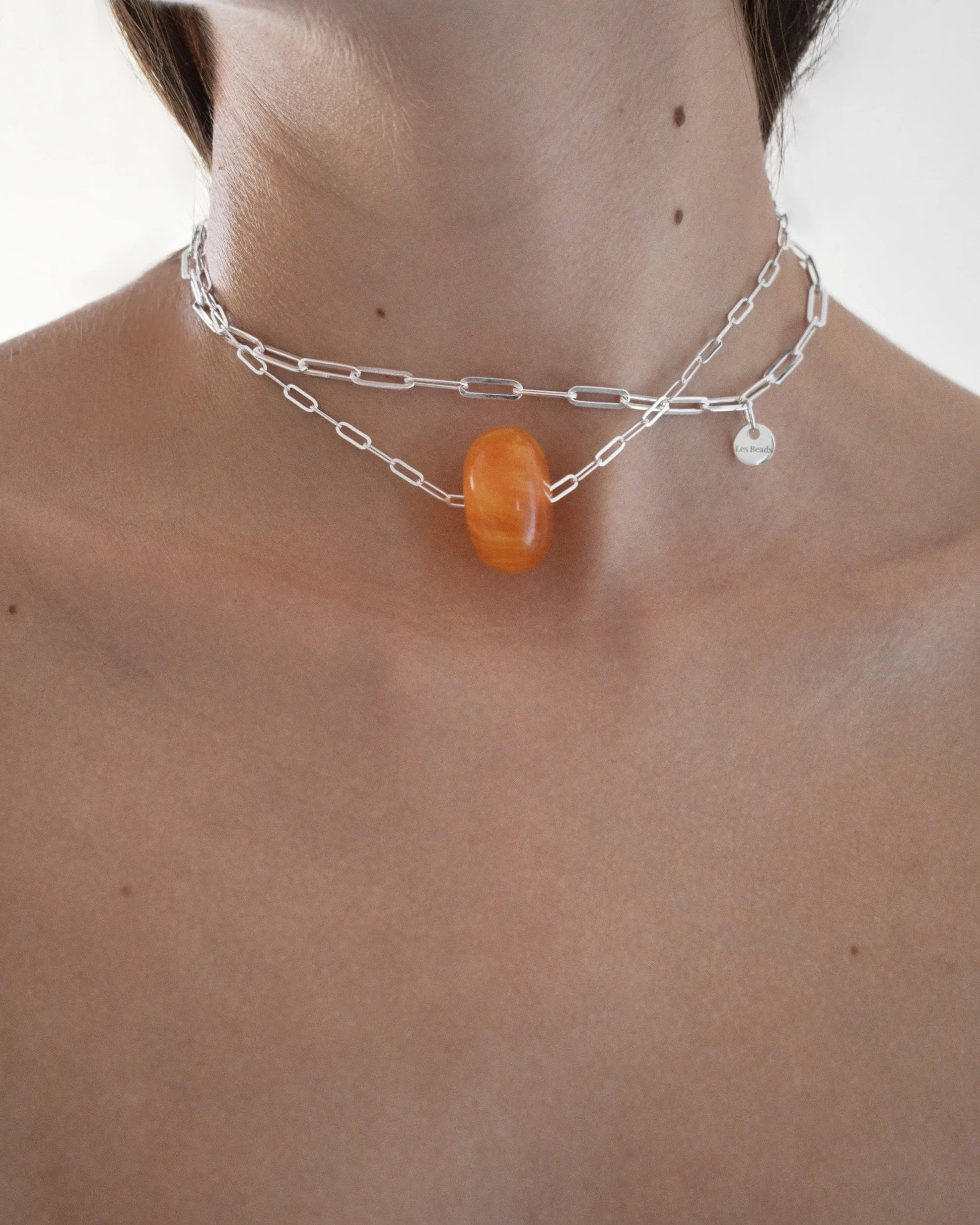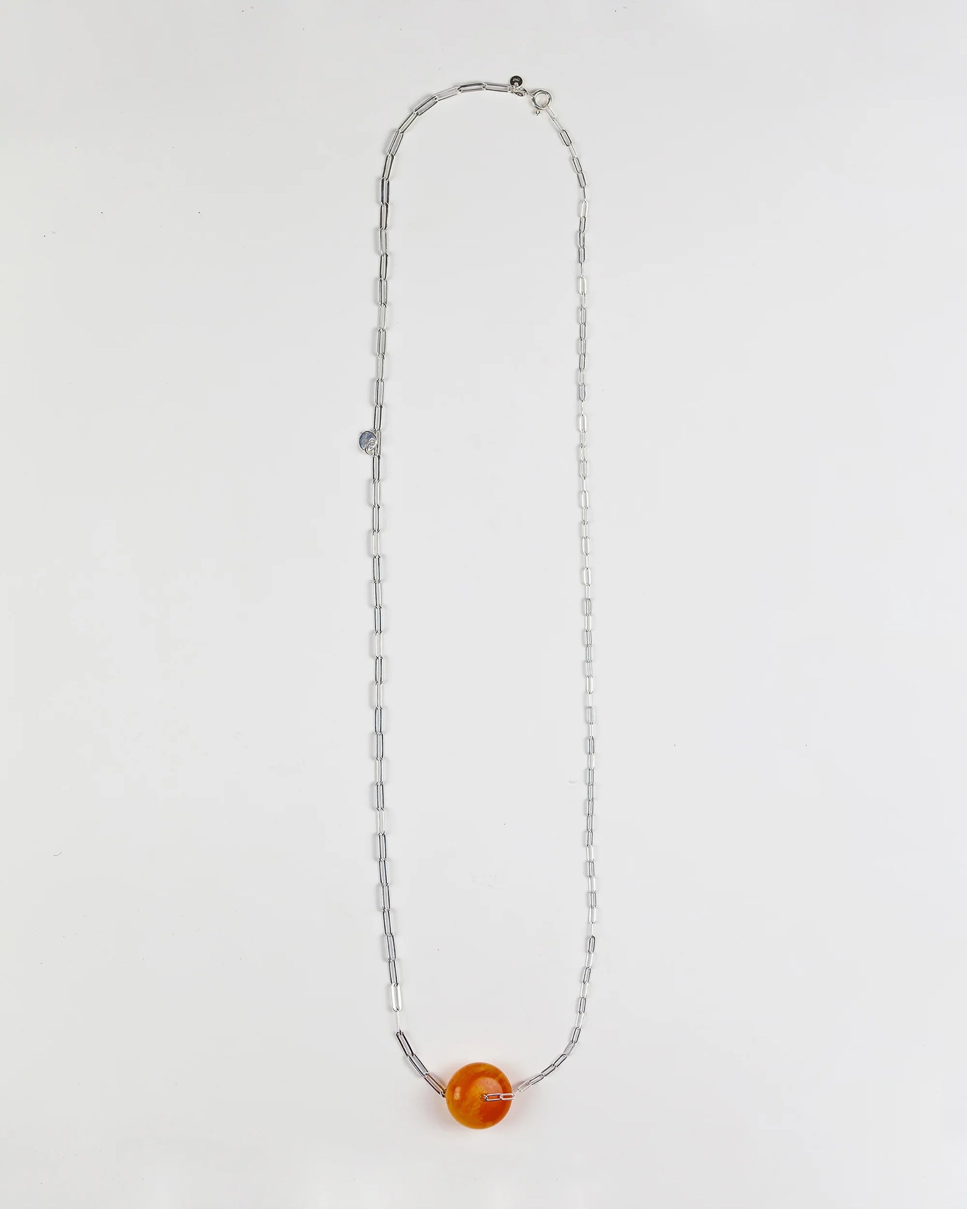 Sterling Silver Double Chain Necklace with Amber Bead, featuring a single Amber bead sterling silver hardware and chains.